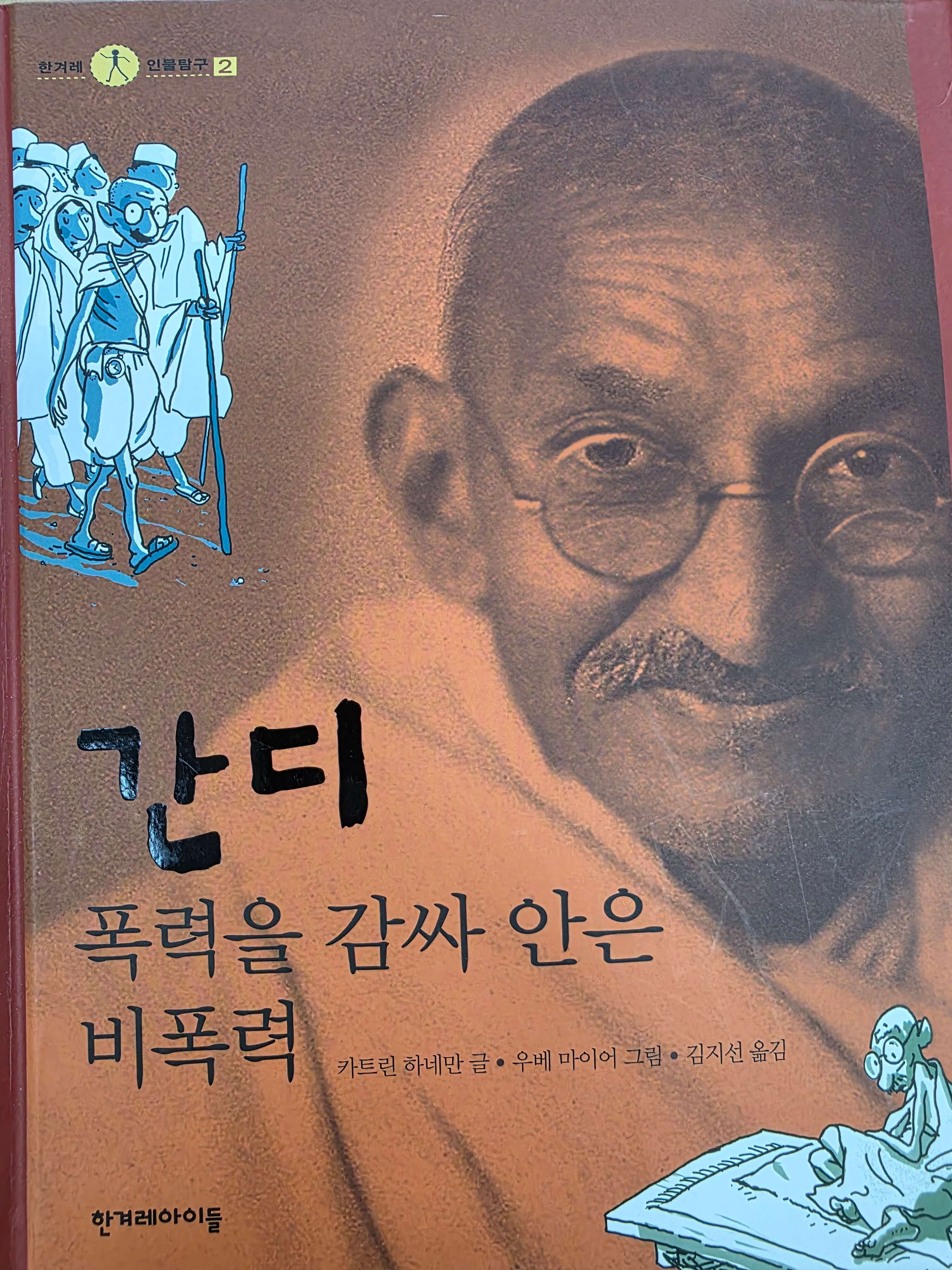 간디는 영국의 지배 아래서 고통받는 인도인들의 삶을 직접 보면서 가난하고 차별받는 사람들에 대한 끊이지 않는 관심과 애정을 실천하는 삶은 죽을 때까지 계속하였습니다. 그것은 부당한 영국의 지배를 물리치기 위한 아주 적극적인 저항의 삶이었습니다. 간디의 저항은 지배받고 차별받는 사람들의 자존심을 드러내는 것이었고, 권력을 행사하고 있는 상대방의 폭력의 위협 때문이 아니라, 자존감을 가진 인간들의 끈질기고 거대한 인간 선언 앞에 굴복할 수밖에 없었던 것입니다. '폭력을 감싸 안은 비폭력 간디'가 책을 통해 지칠 줄 모르는 저항과 도전의 연속이었던 간디의 삶을 함께 배워 가 보면 좋겠습니다.